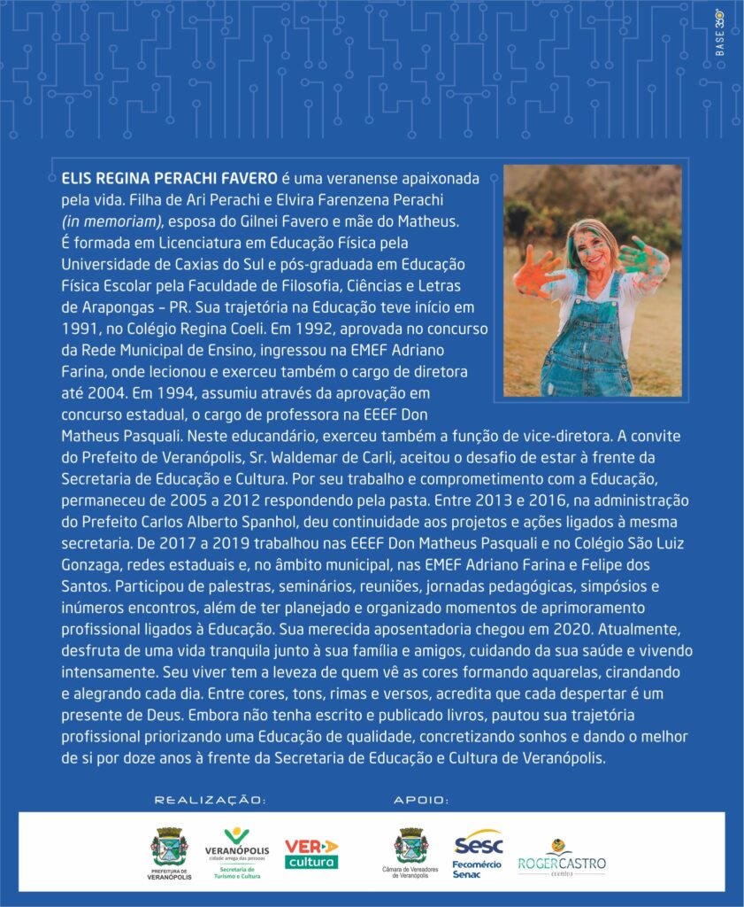 A Prefeitura Municipal de Veranópolis, por meio da Secretaria de Turismo e Cultura, organiza a 30º Feira do Livro, que tem como Patrona, Elis Regina Perachi Favero.
