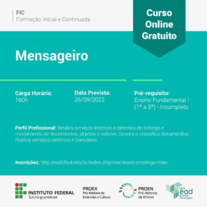 Com a parceria do Instituto Federal de Educação, Ciência e Tecnologia Sul-riograndence – IFSUL, o Polo UAB de Vila Flores juntamente com a Secretaria Municipal de Educação, tem a satisfação de apresentar os novos cursos de formação e aperfeiçoamento.