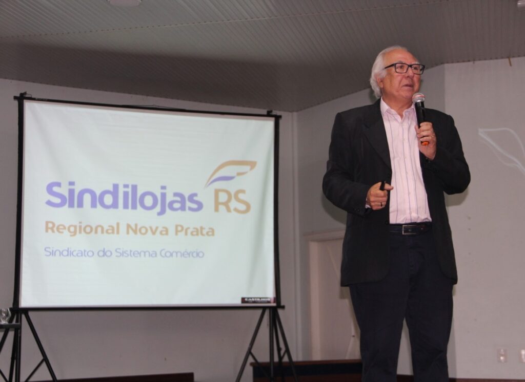 O evento iniciou às 19h30min com fala do Diretor Executivo da entidade, Ariovaldo C. Ribeiro, que agradeceu os presentes e apresentou a evolução das logomarcas da entidade, durante seus 27 anos. Seguindo a orientação da CNC e da Fecomércio-RS, o Sindilojas Regional Nova Prata, passa a usar uma nova logomarca, e esta ficou nos telões durante toda a palestra. Em seguida o agradecimento aos apoiadores: Sicredi Ibiraiaras RS/MG, Unimed Vale das Antas e UCS – Campus Universitário de Nova Prata.