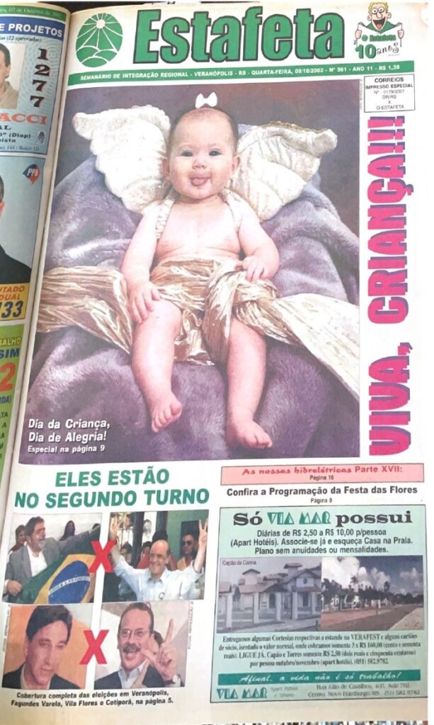 Na edição número 561, d’O Estafeta, que circulou no dia 09 de outubro de 2002, foram os seguintes destaques de capa: Dia da Criança, Dia de Alegria e Eles estão no segundo turno.
