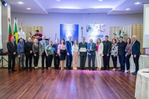 O presidente da CICS SERRA e vice-presidente da FEDERASUL, Elton Paulo Gialdi, em seu pronunciamento, parabenizou a ACISCO pela iniciativa, bem como a Cooperlate. “Fiquei muito honrado em conhecer a história desta Cooperativa e tudo o que ela faz nesta região tão produtiva”, salientou o presidente.