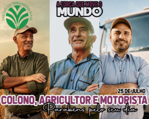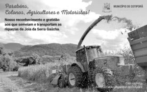 Feliz Dia do Agricultor Colono e Motorista, uma homenagem do Sindicato dos Trabalhadores Rurais e da Prefeitura de Cotiporã.