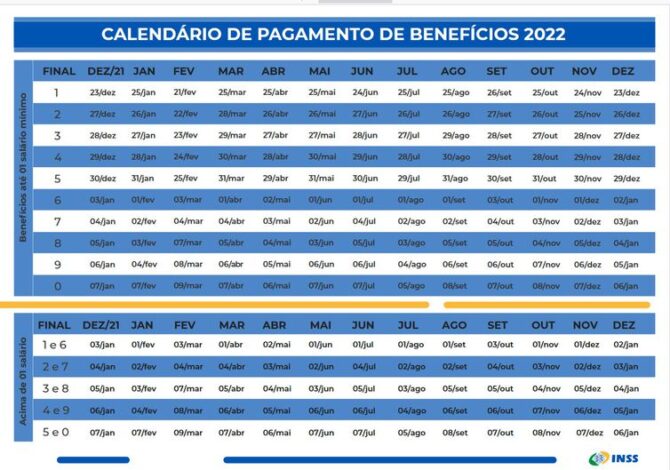 Para saber o dia correto do pagamento consultando a tabela do instituto, o segurado precisa checar o número do seu benefício, composto por um conjunto de dez dígitos (por exemplo, 111.111.112-1). O seu número é o penúltimo, ou, no caso do exemplo, o 2. De posse desta informação, é preciso consultar a tabela, atentando se o valor do benefício é de um salário mínimo ou superior.