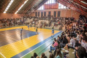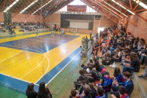 No segundo dia de disputas do JERGS (Jogos Escolares do Rio Grande do Sul), na fase municipal, com a participação de todas as escolas de nossa cidade, lotou o ginásio Alcides Tarasconi (Santa Cruz).