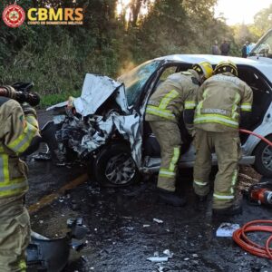 O Corpo de Bombeiros Militar do Rio Grande do Sul, com sede em Veranópolis, atendeu, por volta das 17h desta segunda-feira, dia 04, um acidente veicular envolvendo três veículos, na ERS-355, em direção ao município de Fagundes Varela. Ao chegar no local, a Guarnição de Serviço, verificou que o condutor do veículo Kia Sorento, e a jovem condutora do Chevrolet Celta apresentavam ferimentos leves. Já a condutora do veículo Fiat Palio, que estava presa às ferragens, não apresentava sinais vitais, com ferimentos e múltiplas fraturas evidentes, sendo retirada as ferragens que a mantinha presa, com uso de ferramenta hidráulica de desencarceramento, para a remoção da vítima com o máximo de cuidado. Também participaram do atendimento no local a Polícia Rodoviária Estadual e Brigada Militar.