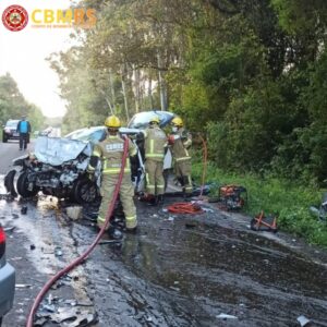 O Corpo de Bombeiros Militar do Rio Grande do Sul, com sede em Veranópolis, atendeu, por volta das 17h desta segunda-feira, dia 04, um acidente veicular envolvendo três veículos, na ERS-355, em direção ao município de Fagundes Varela. Ao chegar no local, a Guarnição de Serviço, verificou que o condutor do veículo Kia Sorento, e a jovem condutora do Chevrolet Celta apresentavam ferimentos leves. Já a condutora do veículo Fiat Palio, que estava presa às ferragens, não apresentava sinais vitais, com ferimentos e múltiplas fraturas evidentes, sendo retirada as ferragens que a mantinha presa, com uso de ferramenta hidráulica de desencarceramento, para a remoção da vítima com o máximo de cuidado. Também participaram do atendimento no local a Polícia Rodoviária Estadual e Brigada Militar.