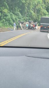Acidente na Serra com feridos deixa BR 470 bloqueada